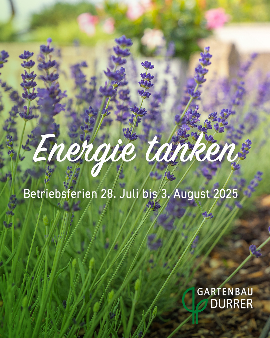 Vom Montag, 28. Juli bis Sonntag, 3. August 2025 gönnt sich das Team Durrer Gartenbau AG eine kurze Verschnaufpause ...